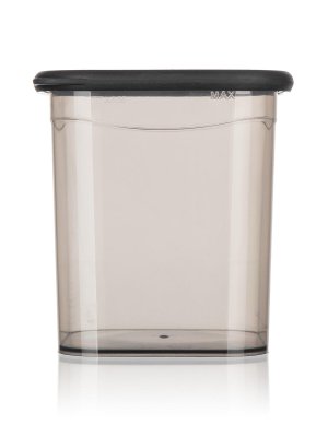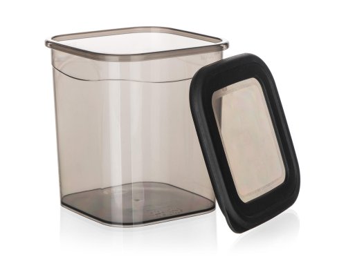 Plastová dóza LISSA s víčkem v kouřové barvě je vhodná k uskladnění potravin, např. rýže, těstovin, zavářky do polévky nebo cereálií.