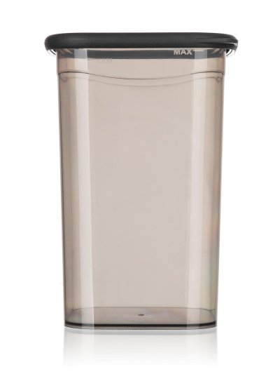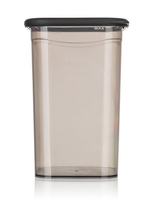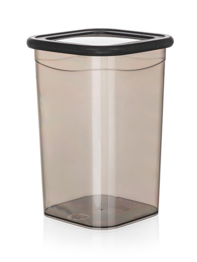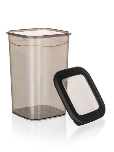 Plastová dóza LISSA s víčkem v kouřové barvě je vhodná k uskladnění potravin, např. rýže, těstovin, zavářky do polévky nebo cereálií.