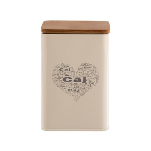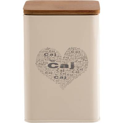 Dóza na čaj s motivem srdce. Rozměry 9,5 x 9,5 x 14 cm.
