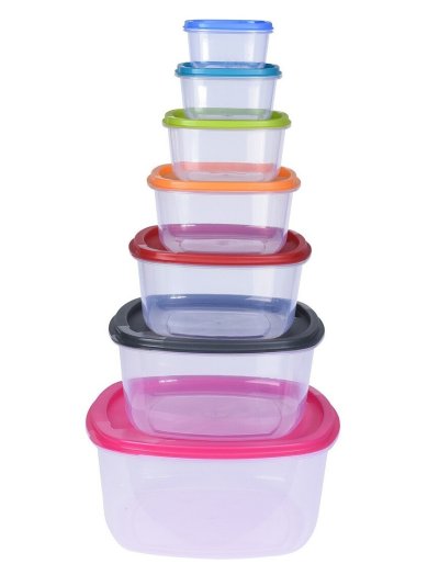 velká sada hranatých skladovacích dóz na potraviny s víčkem- dózy o různých objemech jsou vyrobeny z čirého plastu- ideální pro skladování potravin jako je zelenina a ovoce, luštěniny, ořechy i cereálie- vhodné také pro uchovávání hotových jídel v ledničce nebo jejich přenášení- každá dóza v sadě obsahuje také víko- prázdné boxy bez potravin jsou stohovatelné do sebe a zaberou tedy minimum místa- sada 7 ks obsahuje hranaté dózy s víkem o těchto objemech:- 1x 225 ml- 1x 375 ml- 1x 650 ml- 1x 1.125 litru- 1x 1.9 litru- 1x 3.2 litru- 1x 5.5 litru