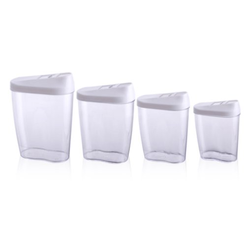 Sada obsahuje následující objem 1,25 l 0,85 l 0,6 l 0,5 l Plastové nádoby na potraviny s dávkovacím víkem pro snadnou manipulaci s potravinami bez nepořádku.