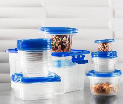 maxi sada skladovacích dóz na potraviny s víčkem- dózy o různých tvarech a objemech jsou vyrobeny z čirého plastu- ideální pro skladování potravin jako je zelenina a ovoce, luštěniny, ořechy i cereálie- vhodné také pro uchovávání hotových jídel v ledničce nebo jejich přenášení- každá dóza v sadě obsahuje také víko- barva: transparentní / modré víko- Sada 27 ks obsahuje:- 1 x skladovací dóza s víkem a rukojetí 8 litrů, do které lze uskladnit všechny ostatní dózy- 2 x kulatá dóza s víčkem 1 litr- 2 x hranatá dóza s víčkem 0,75 litru- 4 x hranatá dóza s víčkem 0,75 litru- 5 x hranatá dóza s víčkem 0,7 litru- 8 x hranatá dóza s víčkem 0,28 litru- 4 x kulatá dóza s víčkem 0,25 litru- 1 x kulatá dóza s víčkem 0,1 litru