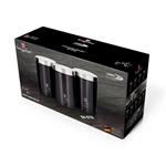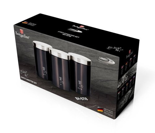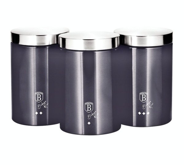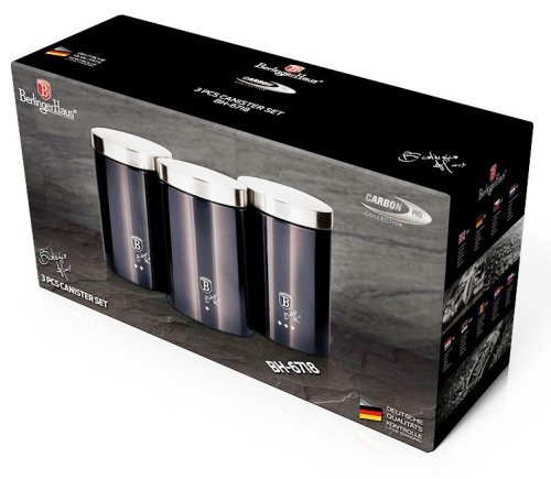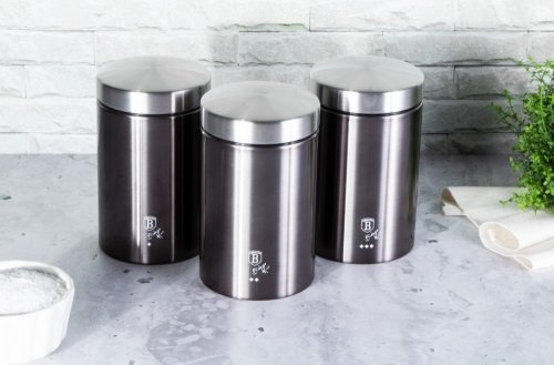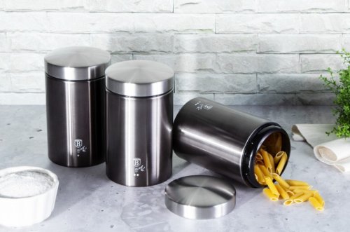sada 3 kusů designových dóz na potraviny z kolekce Carbon PRO - tělo i víko jsou vyrobené z nerezové oceli - určené především pro skladování suchých potravin - dózy jsou ideální na kávu, čaj, cukr, mouku, tětoviny, bylinky, skořápkové plody, atd.. - stylové řešení jak uchránit potraviny před vlhkostí, nečistotami nebo před hmyzem - nerezová ocel je netoxická a neabsorbuje pachy potravin - jednoduchá údržba - kuchyňské dózy BerlingerHaus ve velmi atraktivním provedení jsou designovým a hlavně funkčním doplňkem do kuchyně - barva: šedá metalická - sada obsahuje 3 kusy - rozměry dóz: 11 x 18 cm