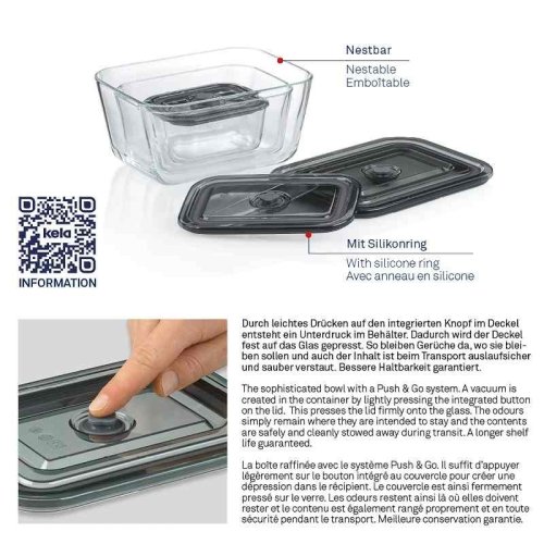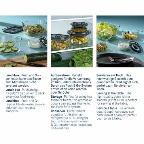 Nádoba na potraviny z borosilikátového skla se systémem Push & Go.