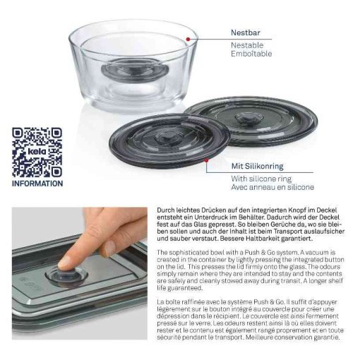 Praktické víko: Plastové víko má integrované tlačítko. Jemným stlačením se vytvoří podtlak (systém push & go), který víčko pevně přitlačí na sklenici. To znamená, že obsah zůstane nepropustný, nepropustný pro aroma a vzduchotěsný.