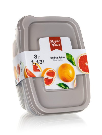 Balení SUPER VALUE obsahuje 3 dózy na potraviny o objemu 1,25 l. Jsou vhodné pro skladování různých potravin. Dózy jsou vyrobené z plastu a dodávají se s víky v barvě Latte.