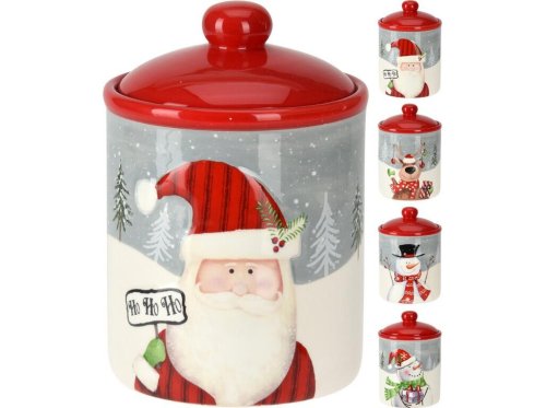 Vánoční dóza pr. 12,5 x 18 cm, s víčkem, keramická, mix dekorů.