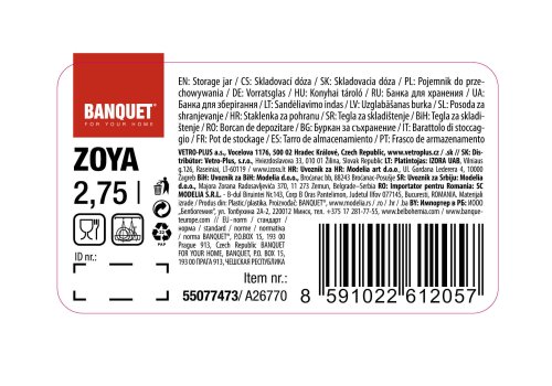 Plastová dóza ZOYA, s víčkem v kouřové barvě, je vhodná k uskladnění potravin, např. rýže, těstovin, zavářky do polévky nebo cereálií. Dózy je možno stohovat na sebe a tím ušetřit spoustu místa.
