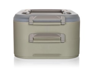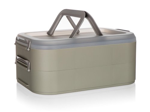 Party box s držadly je praktickým a atraktivním pomocníkem v přenášení a úschově jídla. Party box obsahuje 2 úložná patra v barvě latte a víko v transparentní barvě.