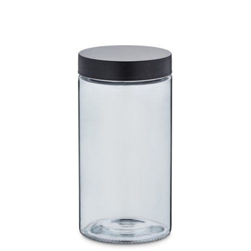 Pro větší pořádek při skladování: kulatá skleněná dóza se šroubovacím víčkem z nerezové oceli. Zásobník je vysoký 22 cm a má průměr 11 cm. Jeho objem je 1,7 l. Sklo/víko nerez matná černá, 11cm , 22cm v