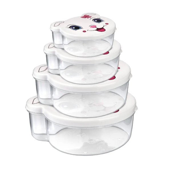 Sada boxů na svačinu potěší svým tvarem děti. Obsahuje 4 různé velikosti boxů s víčkem. Materiál kvalitní plast. Použití max. 95 °C. Vhodné do myčky na nádobí i do MVT - bez víčka. Obsahuje 4 různé velikosti 0.2 L / 0.3 L / 0.5 L a 0.75 L. EAN 8592381171964