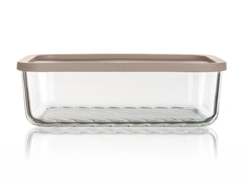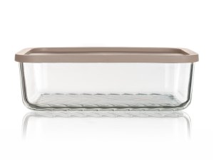 objem: 1,55 l rozměry: 22,5 x 16 x 7 cm materiál: skleněná dóza, plastové víčko barva víčka: latte teplotní rozpětí: min. -12 st. C, max. +220 st. C