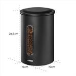 Dóza v originálním designu perfektně doplní vybavení každé kuchyně. Povrchová úprava zamezí jejímu poškrábání a tvorbě otisků prstů. Pomocí průhledného okénka zkontrolujete množství kávy či jiných potravin uvnitř dózy. Máte tedy neustálý přehled.