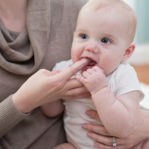 Super jemný 100% silikonový kartáček na jemné čištění rostoucích zoubků a masáž dásní.