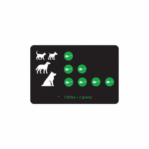 | Kočka / menší pes do 20 kg | 2 g |