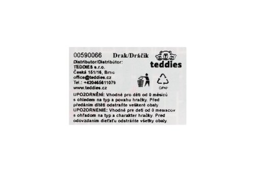 Roztomilý plyšový dráček s velkýma třpytivýma očima okouzlí každé dítě na první pohled. Tento měkoučký mazlík je ideálním společníkem na hraní, usínání i mazlení. Veselé barvy a roztomilý výraz z něj dělají perfektní dárek pro malé milovníky pohádek a fantasy světa. Rozměry výrobku 12 x 19 x 16 cm Vhodné pro děti od narození