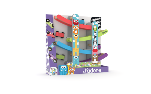 J`adore je řada vzdělávacích hraček pro nejmenší, vyrobených z ekologicky udržitelného dřeva, bez chemikálií. Produkt je vhodný pro děti od 18 měsíců. Sjeďte po rampě autíčkem a buďte první. Produkt rozvíjí dětskou představivost, jemné motorické dovednosti, koordinaci ruka-ok. Sada obsahuje 4 barevná dřevěná auta, která závodí až do samého konce.