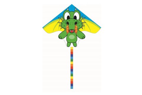 Létací drak s motivem veselého dráčka. Materiál nylon. Baleno v sáčku. Rozměry draka 115x56 cm. Věk 3+