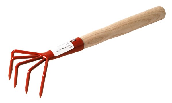 Drápek pětihrotý s násadou pro kypření půdy na záhonech a ve skleníku. Pracovní část je z kovu.