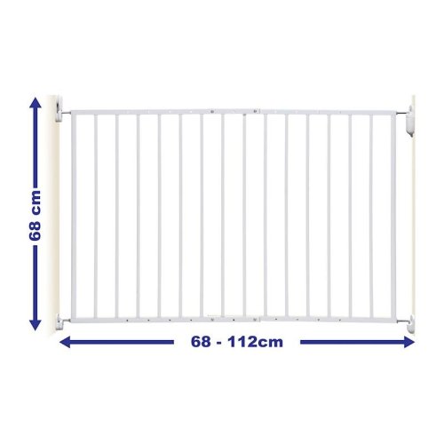 Tato 2-panelová vysouvací zábrana se hodí pro otvory od 68 do 112 cm a měří 68 cm na výšku. Šířka je snadno nastavitelná, aby se zvýšila bezpečnost při používání v horní nebo dolní části schodiště. Díky dvousměrnému otevírání (směrem dovnitř nebo ven) je tato zábrana univerzálním a praktickým doplňkem vašeho rodinného domu.