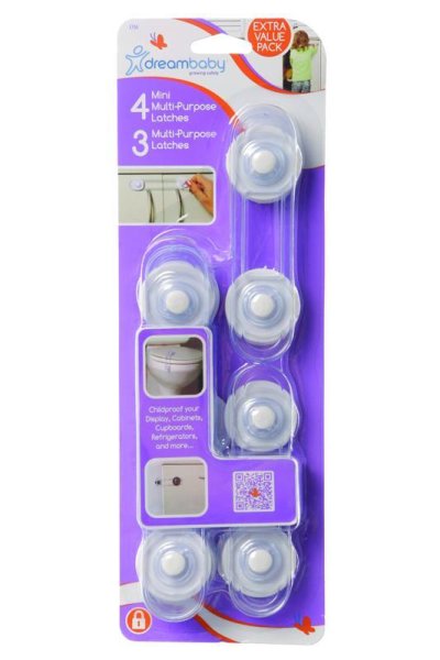 Víceúčelové zámky Dreambaby jsou vhodné pro lesklý a laminovaný nábytek, skleněné a zrcadlové skříňky, lakované dřevo, kovové skříňky. Balení obsahuje 3 multi víceúčelové a 4 mini víceúčelové zámky - efektivní způsob, jak zajistit svůj domov a bezpečnost dětí.