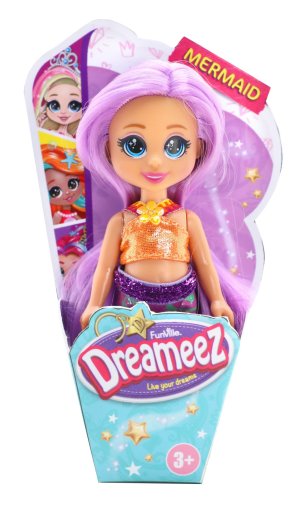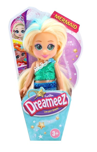 Dreameez mini mořská panna v kornoutku je roztomilá panenka o velikosti cca 12 cm, oblečená v nádherném mořském oblečení. Má dlouhé vlásky, které si děti mohou česat a upravovat, což přináší spoustu zábavy při vytváření různých účesů a pohádkových scén.