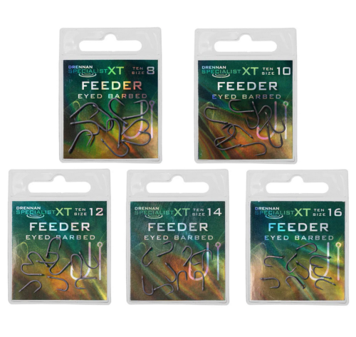 Tento háček Specialist XT Feeder je vylepšenou verzí jednoho z našich nejprodávanějších a nejspolehlivějších modelů, háčku Super Specialist. Díky novým materiálům a výrobním technikám je tento klasický model nyní ostřejší a pevnější než kdykoli předtím. K dispozici ve velikostech 8 až 16 s mikrohrotem a bezhrotem, s hladkou PTFE povrchovou úpravou, která snižuje odlesky při rybaření v jasných a čistých vodách. Rozsah – velikost 8 (0,72 mm), velikost 10 (0,68 mm), velikost 12 (0,60 mm), velikost 14 (0,57 mm), velikost 16 (0,485 mm). Vlastnosti: Háček s očkem PTFE povrchová úprava S protihrotem a bez protihrotu Extrémně odolný a pevný Super ostré, dlouhotrvající jehlové hroty Pevný, spolehlivý háček na velké ryby Kovaný pro extra pevnost 10 háčků v balení.