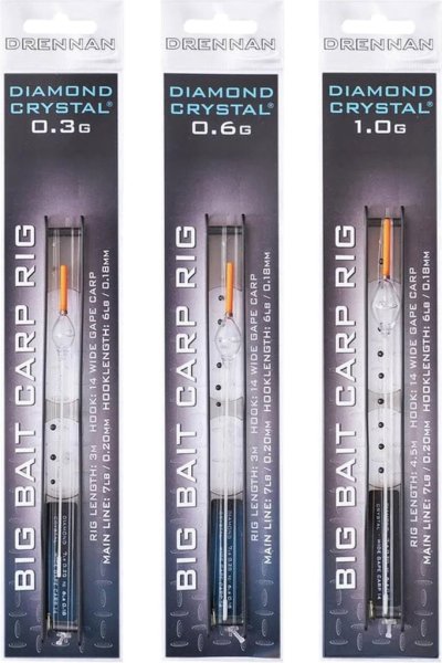 Diamond Crystals® byly vyvinuty speciálně pro komerční revíry, kde je potřeba přesnost, odolnost a nenápadnost. Plováky jsou vybaveny dobře viditelnými plovoucími hroty o průměru 2,5 mm, které usnadňují sledování záběru i za zhoršených podmínek. Na základně špičky se nachází boční očko z nerezové oceli, které je tvarované do uzavřeného kruhu – díky tomu nedochází k poškození vlasce. Průhledné, miniaturní tělo plováku má univerzální tvar, vhodný pro chytání jak v mělčinách, tak ve volné vodě. Na rozdíl od klasických plováků s balzovým nebo pěnovým tělem je Diamond Crystals® téměř neviditelný, extrémně lehký, a přitom velmi pevný a odolný. V kombinaci s kaprovým háčkem velikosti 14 s širokým průvlekem (bez protihrotu) je ideální pro větší nástrahy jako např.: pelety, kukuřice a červi Technické specifikace: Dostupné varianty: 0,3 g a 0,6 g (s délkou návazce 3 m) 1,0 g (s délkou návazce 4,5 m) Průhledné, nenápadné tělo vyfukované technologií pro co nejmenší odpor ve vodě Boční očko z nerezové oceli, tvarované do plného kruhu – zabraňuje poškození vlasce Sestava s hlavním vlascem 7 lb a návazcem 6 lb Háček velikosti 14 bez protihrotu Dlouhé sklolaminátové dříky pro lepší stabilitu a vedení