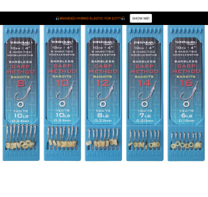 Dokonale navázané návazce pro method feeder s pevnými a spolehlivými háčky Carp Method, navázané na 4” / 10 cm dlouhém monofilním vlasci. Jsou uložené na nových 4” destičkách na háčky, které udržují každý návazec pod mírným napětím, takže zůstává dokonale rovný, bez zalomení a ihned připravený k použití. Dostupné ve variantách s gumičkou (bandits), pushstop a hrotem (spike), což nabízí široké možnosti použití pro různé druhy nástrah. Destičky lze ponechat samostatně, uložit do Drennan Hook Book nebo je pomocí přiložených samolepek přenést do 4” Hook Boxu či 6” Hook Boxu, kde lze jednotlivé typy snadno označit. Dostupné varianty: Velikost 8 – návazec 10 lb (0,24 mm) Velikost 10 – návazec 10 lb (0,24 mm) Velikost 12 – návazec 8 lb (0,22 mm) Velikost 14 – návazec 7 lb (0,20 mm) Velikost 16 – návazec 6 lb (0,18 mm) Vlastnosti: Délka 4” / 10 cm 8 návazců na destičce Dokonale rovné method feeder návazce Pevné háčky Carp Method Extra odolný monofilní vlasec Přírodní latexové gumičky na nástrahu Kompatibilní s 4” a 6” Hook Boxy