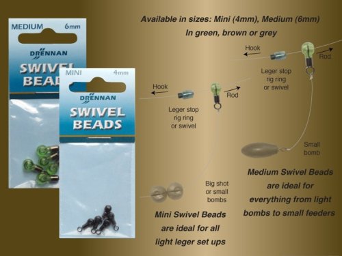 Obratlíky Drennan Swivel Beads představují klíčový prvek pro efektivní rybolov. Díky hladké rotaci po vlasci jsou ideální pro širokou škálu montáží.