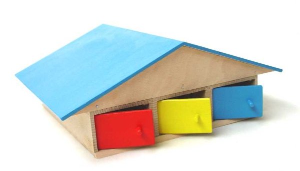 Domek plný garáží - to je něco pro kluky. Z každé strany domečku jsou tři samostatné garáže. Vhodné pro autíčka do rozměru 10 x 5 cm. Hlavní vlastnosti: zlepšuje koordinaci v zábavném prostředípoužité barvy jsou zdravotně nezávadné