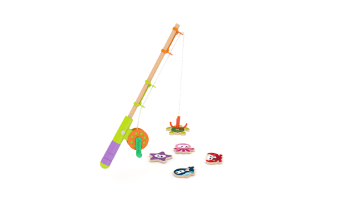 Hračka z přírodního dřeva. Jste připraveni vyrazit na ryby? Tato sada obsahuje dřevěné rybky, rybářský prut. Děti mohou pomocí dřevěného prutu chytat magnetické dřevěné rybky. Rybářská výprava může začít! Pro malé rybáře od 2 let. Hra rozvíjí koordinaci, obratnost a motoriku.