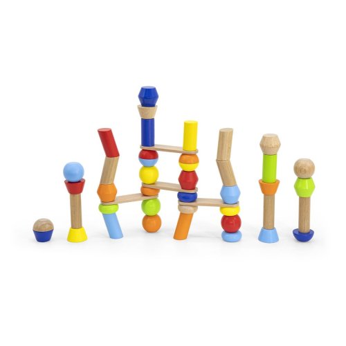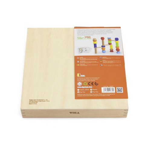 Celá sada je vyrobena z bukového dřeva a natřena netoxickými barvami v tlumených barvách, které upoutají pozornost a povzbudí ke hře a zároveň poskytnou spoustu zábavy. Naší prioritou je bezpečnost dětí a nejvyšší kvalita hraček, proto dbáme na to, aby barvy, které používáme k natírání našich hraček, byly netoxické a splňovaly bezpečnostní normy (EN71 a ASTM).