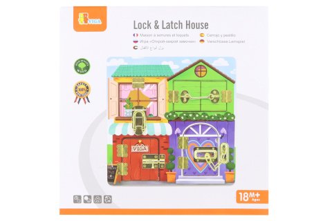 Sada různých typů zámků zakomponovaná do dřevěného domu, je určená pro malé dětské prstíky, které na nich mohou potrénovat svoji obratnost. Přednosti: rozvíjí jemnou motoriku, trénuje logické uvažování a koordinaci pohybů. Rozměr desky cca 30 x 30 x 2,2 cm. Věk 18m+
