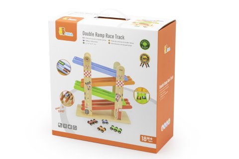 Dřevěná klouzačka s auty. Balení obsahuje 4 autíčka. Rozměry balení cca 37x38x16 cm. Rozměry výrobku 35x37x14,9 cm. Věk 18m+