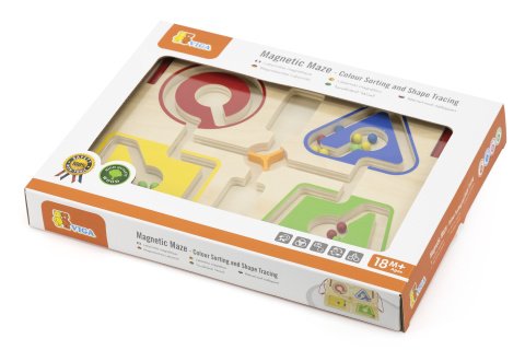 Dřevěná magnetická hra-labyrint. Pomocí magnetického pera se posouvají kuličky v labyrintu. Rozvíjí dětskou zručnost a učí barvy. Rozměry balení cca 31x24x4 cm. Věk 18m+