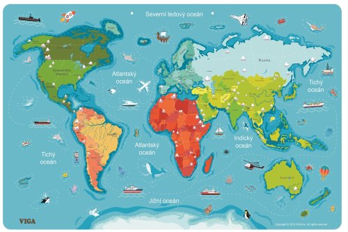 Dřevěná mapa světa s tabulí v českém jazyce. Mapa obsahuje mnoho magnetický dílků. Hraj si a poznávej všechny kouty světa. Druhá strana mapy slouží jako tabule na kreslení a psaní. Rozměry cca 72 x 46 x 0,7 cm. Věk 3+