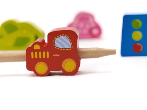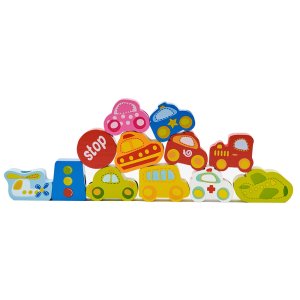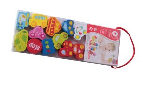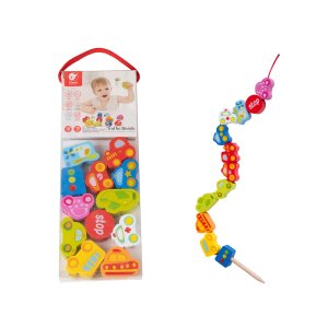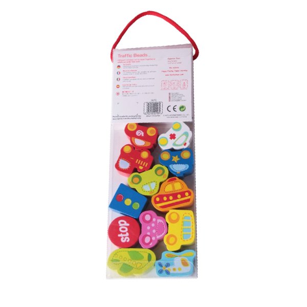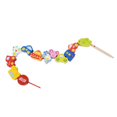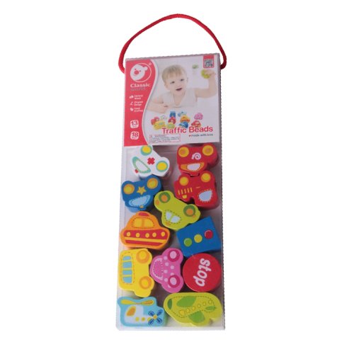 Barevná navlékačka s motivy autíček, letadel a semaforů potěší každého malého fanouška dopravy. Dřevěné dílky se snadno navlékají na šňůrku díky velkým otvorům a pomáhají dětem rozvíjet jemnou motoriku, trpělivost a představivost. Sada obsahuje 13 veselých tvarů, které lze využít i k poznávání barev nebo při hraní na dopravu. Rozměr balení 9,5 × 26 cm Vhodné pro děti od 18 měsíců.