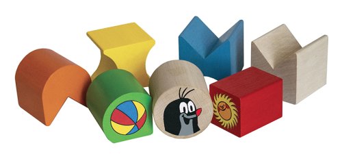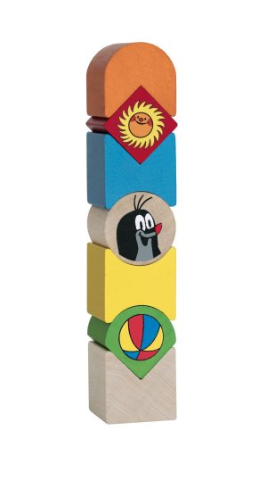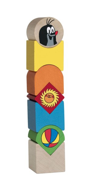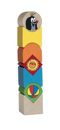 Dřevěné dílky různých tvarů a barev s potiskem vrstvíme na sebe. Rozvíjíme tak balanční představivost dítěte a jeho vlastní představivost.