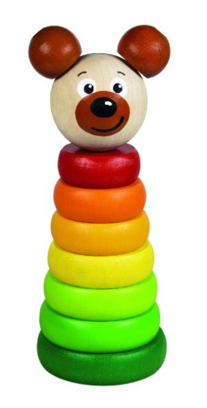 Dřevěná skládací pyramida s motivem méďi, rozvijí představivost, logické myšlení a motorické schopnosti dítěte.