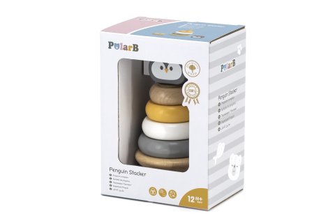 Dřevěná skládací pyramida tučňák o rozměru cca 12 x 7,5 cm. Rozměry balení cca 13 x 18 x 9 cm. Věk 12 měs +