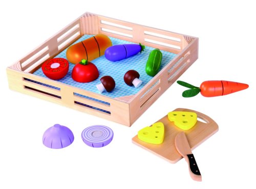 Zeleninu lze „překrojit“ přiloženým nožem, pak je velmi snadno spojíte pomocí suchého zipu umístěného uvnitř. Hračka rozvíjí jemné motorické dovednosti.