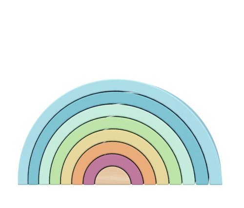 Přeneste duhu z oblohy do dětského pokoje. Krásná dřevěná skládačka ve tvaru duhy umožní dětem používat svou představivost k vytváření různých tvarů. Dokáže s její pomocí postavit například železniční tunel nebo domeček pro panenky. Možností je nekonečně mnoho. Krásné pastelové barvy.