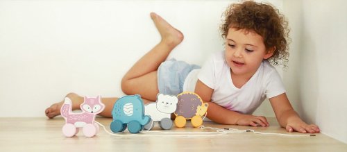 Šedobílý pes na provázku od společnosti Viga se bude hodit jako další pobídka k chůzi pro děti, které se učí dělat první krůčky. Módní a tlumené barvy dokonale obohatí vaši sbírku hraček. Malé štěňátko je dodáváno s vodítkem, které vám umožní vzít ho na procházku po koberci nebo po domě.