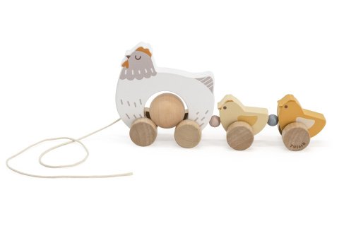 Dřevěná tahačka-Slepička s kuřátky. Rozměry balení 36x20x6,5 cm. Věk 18m+