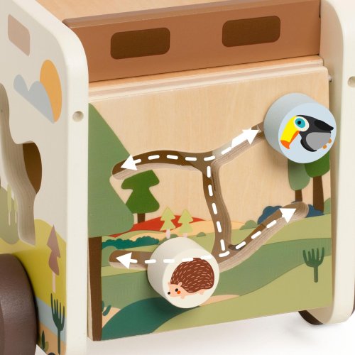 Vydej se na dobrodružnou výpravu savanou se safari autem plným zvířátek! Tato dřevěná vkládačka kombinuje hru s poznáváním – děti přiřazují zvířátka do správných otvorů, rozvíjejí jemnou motoriku, koordinaci i prostorovou představivost. Každý dílek je navržen tak, aby padl do malých dětských rukou. Vozidlo je zároveň úložným prostorem, do kterého si děti mohou zvířátka po hře zase uklidit. Veselý design s ilustracemi a příjemné barvy podporují chuť k objevování. Rozměr balení: 28 × 16 × 16 cm Vhodné pro děti od 18 měsíců.