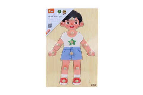 Krásná dřevěná vkládačka-chlapec. Děti se naučí zručnosti a zároveň části lidského těla. Vkládačka má 12 dílků. Rozměry 30x45x0,5 cm. Věk 18m+