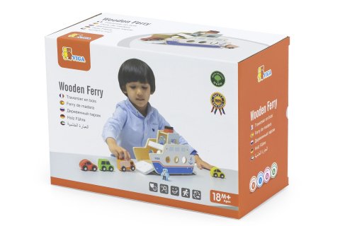 Dřevěná vkládačka loď o rozměru cca 25 x 19 x 12 cm na kolečkách,jde s ní jezdit a zároveň je vyklápěcí z obou stran,takže mohou auta jezdit na loď a sjíždět.Balení obsahuje 4 dřevěná auta volný chod o velikosti ca 6,5 cma 2 dřevěné postavičky o velikosti cca 4 cm.Rozměr balení cca 24,5 x 18 x 12,5 cm.Věk 18 měs +