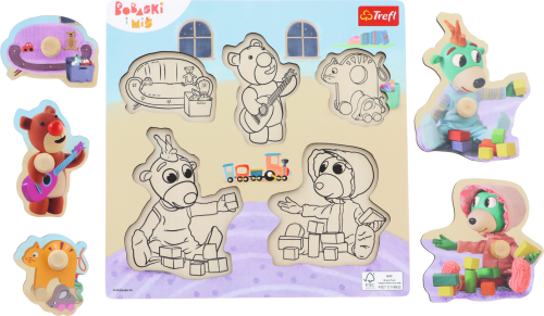 Vkládačka pro nejmenší s obrázky ze seriálu Treflíci a medvídek. Dítě se podle obrysů a tvaru snaží najít správný obrázek (rozvoj představivosti a logického myšlení), a umístit jej do správného otvoru (rozvoj jemné motoriky). Vkládačka obsahuje pět dílků s úchytkami a podkladové obrázky.
