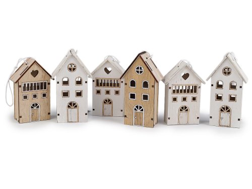 Malé dřevěné domečky můžete díky poutku zavěsit na stromeček, dekorační věnce, větvičky ve váze apod. Jsou vhodné k celoročnímu aranžování. Díky svému decentnímu designu skvěle zapadnou do různých stylů interiéru. Domečky jsou oboustranné a ve dvou velikostech.